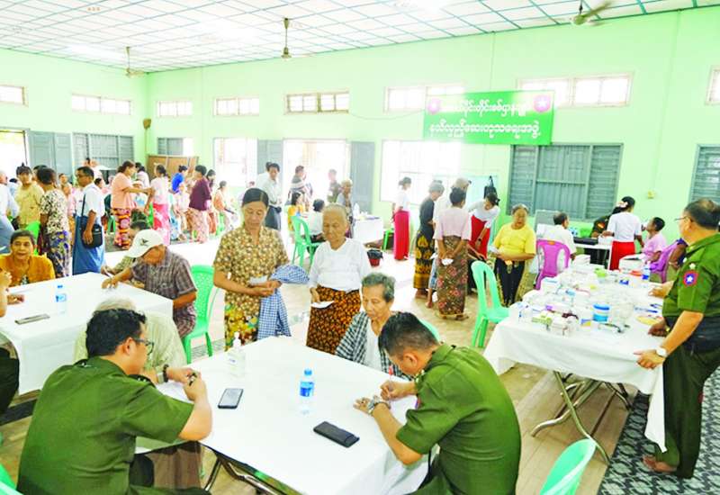 မန္တလေးတိုင်းဒေသကြီး မဟာအောင်မြေမြို့နယ် ရတနာဘုမ္မိအရှေ့ရပ်ကွက် ရတနာကောသဘုရားရှိ သံဃာတော်များနှင့် ဒေသခံပြည်သူများအား ယမန်နေ့ နံနက်ပိုင်းတွင် အလယ်ပိုင်းတိုင်းစစ်ဌာနချုပ် နယ်လှည့်ဆေးကုသရေးအဖွဲ့က အဆိုပါဘုရားဝင်းအတွင်းရှိ ဓမ္မာရုံ၌အခြေပြု၍ ကျန်းမာရေးစောင့်ရှောက်မှုလုပ်ငန်းများ ဆောင်ရွက်ပေးသည်။