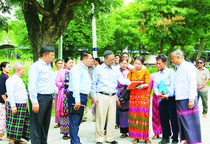 ပညာရေးဝန်ကြီးဌာန ဒုတိယဝန်ကြီး ဒေါက်တာဇော်မြင့်နှင့် ဦးနေမျိုးလှိုင်တို့သည် တာဝန်ရှိသူများနှင့်အတူ ယနေ့နံနက်ပိုင်းတွင် မန္တလေးတက္ကသိုလ်သို့ သွားရောက်၍ မန္တလေးတက္ကသိုလ် ရာပြည့်သဘင်ကျင်းပရန် ပြင်ဆင်ဆောင် ရွက်နေမှုအခြေအနေ၊ တက္ကသိုလ်ကျောင်းဝင်းအတွင်း နေရာများကို လိုက်လံကြည့်ရှုစစ်ဆေးသည်။