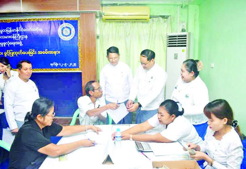 အလုပ်သမားဝန်ကြီးဌာန လူမှုဖူလုံရေးအဖွဲ့ပိုင် အလုပ်သမားဆေးရုံကြီး(ရန်ကုန်)တွင် အကျုံးဝင် အာမခံအလုပ်သမားများ၏ ဆေးဖိုးကုန်ကျစရိတ်များ ခွင့်ပြုထုတ်ပေးခြင်းကို ယမန်နေ့နံနက် ပိုင်းက အလုပ်သမားဆေးရုံကြီး(ရန်ကုန်) အစည်းအဝေးခန်းမ၌ ဆောင်ရွက်ရာ ရန်ကုန်တိုင်းဒေသကြီး တိုင်းရင်းသားရေးရာဝန်ကြီး ဦးစောဂျက်ကော့ထူး တက်ရောက် အမှာစကားပြောကြားသည်။