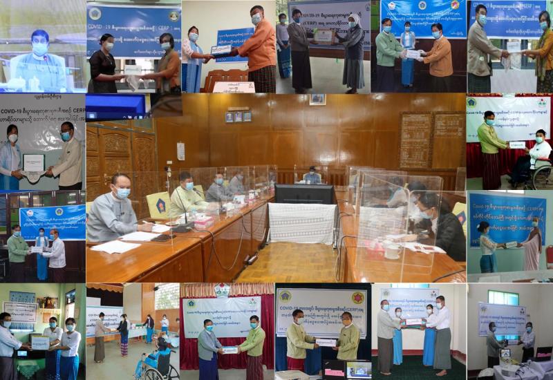 ကိုဗစ်-၁၉ စီးပွားရေးကုစားမှုအစီအစဉ်(CERP)အရ တိုင်းဒေသကြီး/ ပြည်နယ်(၉)ခုရှိ မသန်စွမ်းသူများနှင့် ဂေဟာ/ရိပ်သာများသို့ ထောက်ပံ့ငွေများပေးအပ်ခြင်းကို ယနေ့နံနက်ပိုင်းက အဆိုပါ ဝန်ကြီးရုံး အစည်းအဝေးခန်းမ၌ Online စနစ်ဖြင့်ကျင်းပသည်။