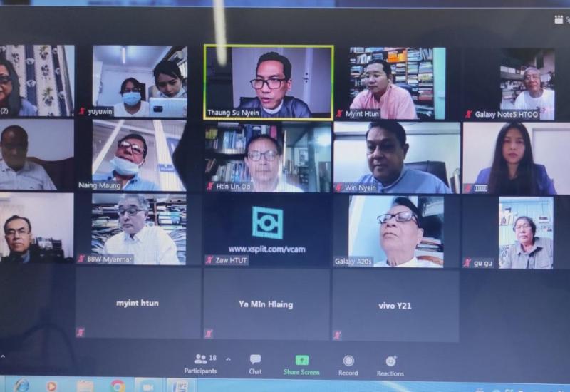 စာပေမူပိုင်ခွင့်ဆိုင်ရာ စုပေါင်းစီမံခန့်ခွဲသည့် အဖွဲ့အစည်းဖြစ်မြောက်ရေးကော်မတီ ပထမအကြိမ် လုပ်ငန်းညှိနှိုင်း အစည်းအဝေးကို ယနေ့မွန်းလွဲ ၂ နာရီအချိန်တွင် Video Conferencing စနစ်ဖြင့် ကျင်းပရာဖြစ်မြောက်ရေးကော်မတီ ဥက္ကဋ္ဌ ဉီးကျော်စွာ (ချစ်ဉီးညို) ၊ ဒုတိယဥက္ကဋ္ဌများဖြစ်ကြသည့် ဦးမြင့်ထွန်း၊ ဦးသောင်းစုငြိမ်းနှင့် အဖွဲ့ဝင်များ တက်ရောက်ဆွေးနွေးကြသည်။