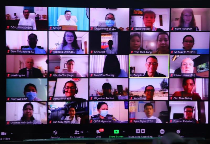 အလုပ်သမား၊ လူဝင်မှုကြီးကြပ်ရေးနှင့် ပြည်သူ့အင်အားဝန်ကြီးဌာန အပြည်ပြည်ဆိုင်ရာ အလုပ် သမား ရေးရာ အဖွဲ့- ILO နှင့် UN Women Myanmar တို့ပူးပေါင်း၍ Safe and Fair Project ပါ အာဆီယံ ဒေသတွင်းရှိ အမျိုးသမီးရွှေ့ပြောင်း အလုပ်သမားများအတွက် အခွင့် အရေးများနှင့် အခွင့်အလမ်းများ ရရှိ စေခြင်းနှင့် စပ်လျဉ်းသည့် အမျိုးသား အကြံပေးကော်မတီ အစည်းအဝေးကို ယနေ့ နံနက် ၉ နာရီတွင် အဆိုပါဝန်ကြီးဌာန အစည်း အဝေးခန်းမ၌ Virtual meeting ဖြင့်ကျင်းပသည်။