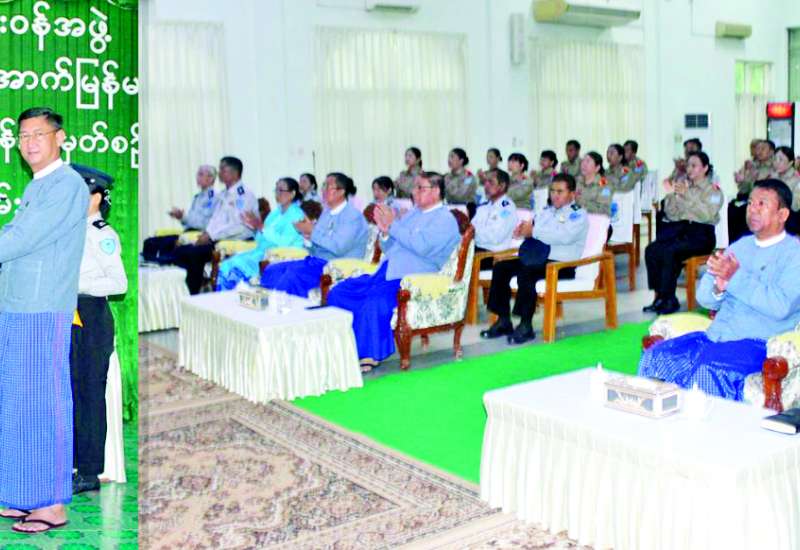 အဆင့်မြင့်အရာထမ်းသင်တန်း အမှတ်စဉ်(၂၇)၏ သင်တန်းဆင်းပွဲကို နိုင်ငံ့ဝန်ထမ်းတက္ကသိုလ် (အောက်မြန်မာပြည်)၌ ယနေ့ကျင်းပရာ ပြည်ထောင်စုရာထူးဝန်အဖွဲ့ဥက္ကဋ္ဌ ဦးစိုးမင်းဦး၊ အဖွဲ့ဝင်ဦးစိုးတင့်၊ တာဝန်ရှိသူများနှင့် သင်တန်းသား သင်တန်းသူများ တက်ရောက်ကြသည်။