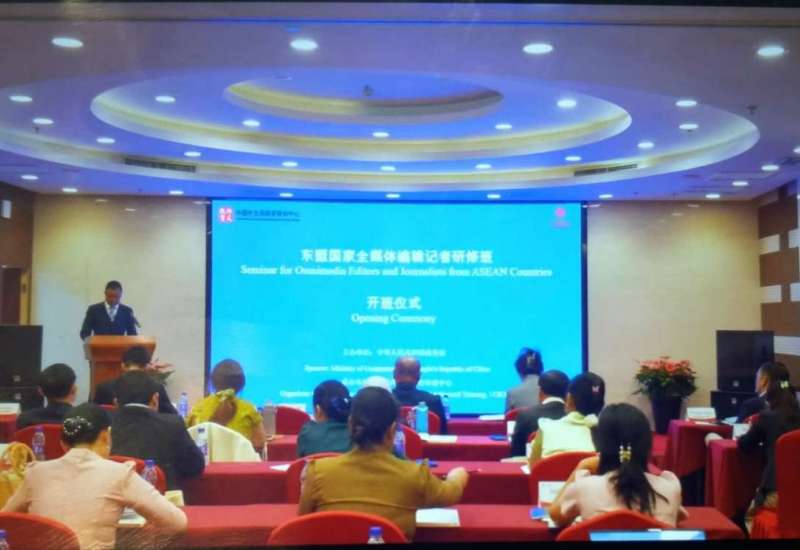 တရုတ်ပြည်သူ့သမ္မတနိုင်ငံ၊ စီးပွားရေးနှင့်ကူးသန်းရောင်းဝယ်ရေးဝန်ကြီးဌာန (MOFCOM) မှ ကြီးမှူး၍ CICG Institute ၏ ထောက်ပံ့ကူညီမှုဖြင့် ကျင်းပသည့် အာဆီယံအဖွဲ့ဝင်နိုင်ငံများမှ Omnimedia သတင်းမီဒီယာ အယ်ဒီတာများနှင့် စာနယ်ဇင်းသမားများ တွေ့ဆုံဆွေးနွေးပွဲ ဖွင့်ပွဲအခမ်းအနားကို စက်တင်ဘာ ၉ ရက် ၊ နံနက် ၉နာရီခွဲက တရုတ်ပြည်သူ့သမ္မတနိုင်ငံ၊ ပေကျင်းမြို့ရှိ Beijing ZIYU ဟိုတယ်၌ ကျင်းပခဲ့ကြောင်းသိရသည်။