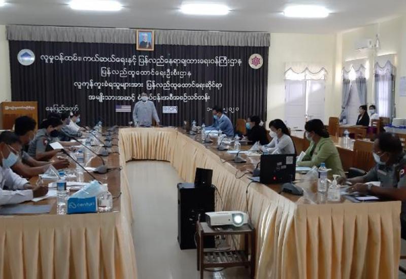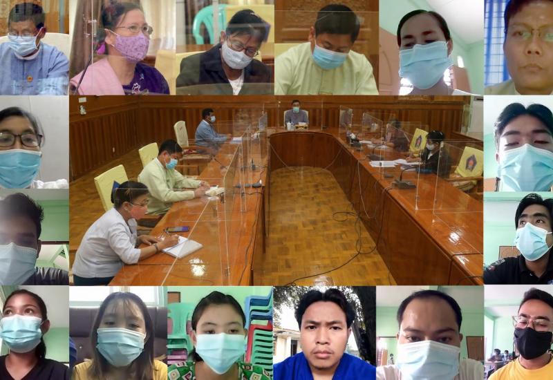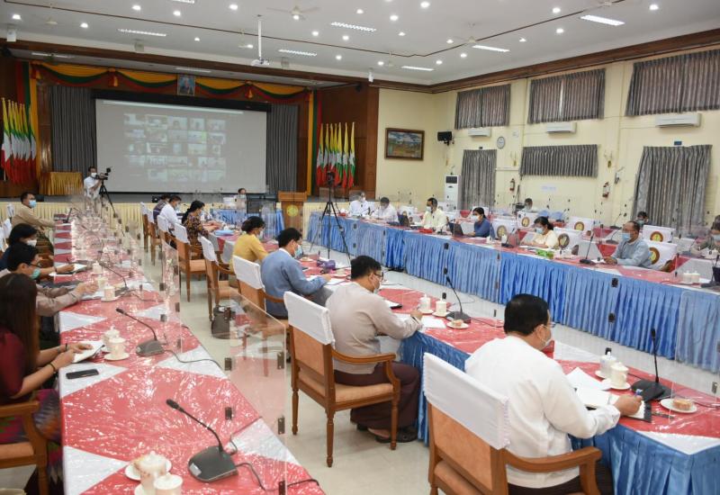 ရခိုင်ပြည်နယ်တွင်သာမက တိုင်းဒေသကြီး/ ပြည်နယ်အားလုံး၌ ကိုဗစ်-၁၉ ကာကွယ်ထိန်းချုပ်ရေး အရှိန်အဟုန်မြှင့်လုပ်ဆောင်ရန် ဗဟိုနှင့် တိုင်းဒေသကြီး/ ပြည်နယ်တာဝန်ရှိသူများ ဆွေးနွေးပွဲကို ယနေ့ နံနက် (၉) နာရီတွင် Videoconferencing စနစ်ဖြင့် နေပြည်တော်ရှိ ကျန်းမာရေးနှင့်အားကစားဝန်ကြီးဌာန မှ ပြုလုပ်သည်။