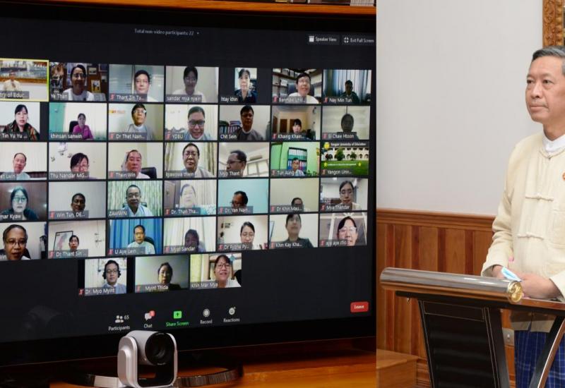 ပညာရေးစီမံခန့်ခွဲမှုအသိအမှတ်ပြု လက်မှတ်ရသင်တန်း (Certificate in Education Management – CEM Training) ဖွင့်ပွဲ အခမ်းအနားကို ယနေ့ မွန်းလွဲ ၂ နာရီခွဲတွင် နေပြည်တော်ရှိ ပညာရေးဝန်ကြီးဌာန အစည်းအဝေးခန်းမ၌ Video Conferencing စနစ်ဖြင့် ကျင်းပသည်။