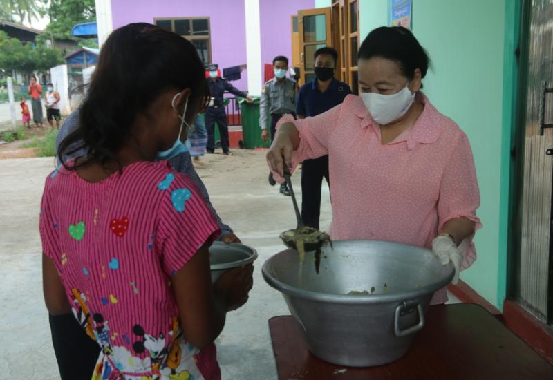 သံလွင်မြစ်ရေမြှင့်တက်လာမှုကြောင့် ဘားအံမြို့ မြေပိုင်းရပ်ကွက်အချို့ရှိ လူနေအိမ်များတွင် မြစ်ရေဝင်ရောက်ပြီး ဆက်လက်နေထိုင်၍မရတော့သည့်အတွက် ရေဘေးကယ်ဆယ်ရေးစခန်း (၆) ခုဖွင့်လှစ်၍ ပြောင်းရွှေ့နေထိုင်စေခဲ့ရာ ယနေ့နံနက်ပိုင်းက ဘားအံမြို့ အမှတ်(၅)ရပ်ကွက် Cyclone Shelter ရှိ ရေဘေးရှောင်အိမ်ထောင်စုများအား ကရင်ပြည်နယ်ဝန်ကြီးချုပ် ဒေါ်နန်းခင်ထွေးမြင့်နှင့် တာဝန်ရှိသူများက အာဟာရဖြည့်စွက်နံနက်စာ ကြာဇံဟင်းခါး သွားရောက်ကျွေးမွေးခဲ့သည်။