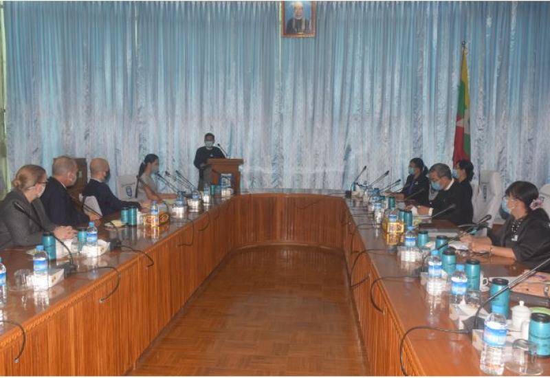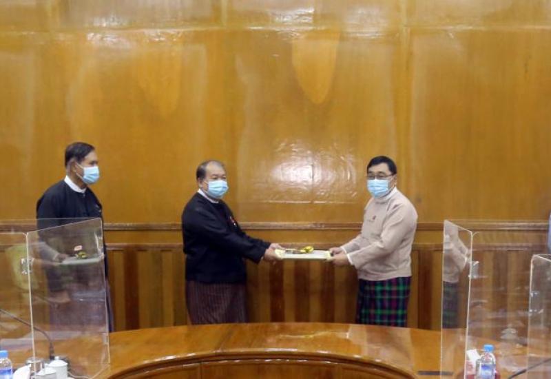 အမေရိကန်သံရုံးမှ ပြည်ထောင်စုရှေ့နေချုပ်ရုံးသို့ Distance Learning Capacity အတွက် အထောက် အကူပြုပစ္စည်းများ ပေးအပ်ခြင်း အခမ်းအနားကို ယနေ့ နံနက် ၁၁ နာရီခွဲတွင် ပြည်ထောင်စုရှေ့နေချုပ်ရုံး အစည်းအဝေးခန်းမ၌ ကျင်းပသည်။