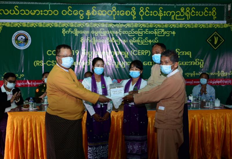 GOVID-19 စီးပွားရေးကုစားမှုအစီအစဉ် CERP ဖြင့် ရှမ်းပြည်နယ်(မြောက်ပိုင်း)အတွင်း Rs-Cs မျိုးသန့်မျိုးစေ့ထုတ် စိုက်ပျိုးမည့် တောင်သူများအား ဒုတိယအရစ် ထောက်ပံငွေပေးအပ်ခြင်းကို ယနေ့ နံနက်(၉)နာရီခွဲက လားရှိုးမြို့ ဟူးမွန်ကျေးရွာ ရှင်းလင်း ဆောင်ခန်းမ၌ ကျင်းပကြောင်း သိရှိရသည်။