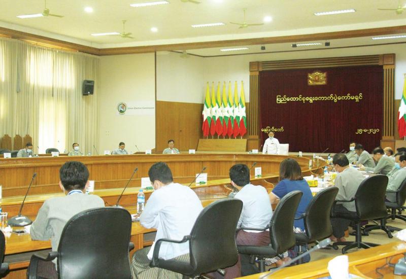 ပြည်ထောင်စုရွေးကောက်ပွဲကော်မရှင်ဥက္ကဋ္ဌ ဦးလှသိန်းသည် ပြည်တွင်းအရပ်ဘက်လူမှုအဖွဲ့အစည်းကိုးဖွဲ့မှ ကိုယ်စားလှယ်များအား ယနေ့မွန်းလွဲ ၂ နာရီက နေပြည်တော်ရှိ ပြည်ထောင်စုရွေးကောက်ပွဲကော်မရှင်ရုံး အစည်းအဝေးခန်းမ၌ လက်ခံတွေ့ဆုံသည်။