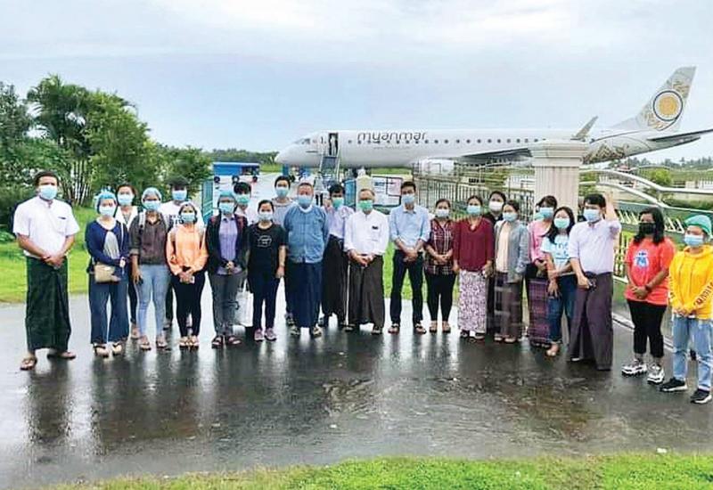 ရခိုင်ပြည်နယ်၏ ကိုဗစ် - ၁၉ ရောဂါ ကာကွယ်၊ ကုသ၊ ထိန်းချုပ်ရေး လုပ်ငန်းများ၌ “မိမိဆန္ဒအလျောက်” ယာယီ တာဝန် ထမ်းဆောင်မည့် ဆရာဝန်နှင့် သူနာပြုများပါဝင်သော အဖွဲ့သည် ယနေ့နံနက်ပိုင်းတွင် ဒုတိယ အသုတ်အနေဖြင့် မြန်မာ အမျိုးသားလေကြောင်း အထူး လေယာဉ်ဖြင့် စစ်တွေမြို့သို့ ထပ်မံ ရောက်ရှိ ကြသည်။