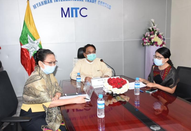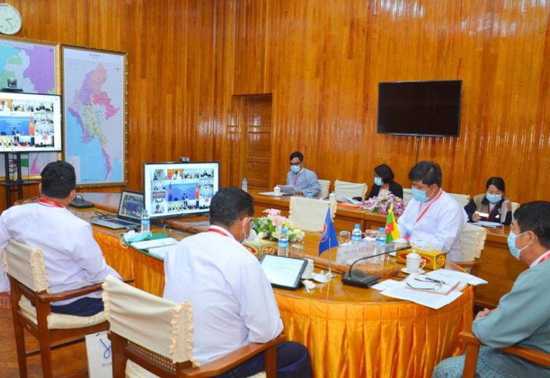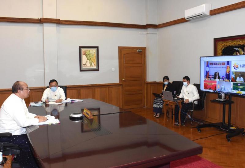အာဆီယံစီးပွားရေးဝန်ကြီးများနှင့် အာဆီယံစီးပွားရေး အကြံပေးကောင်စီတို့၏ တွေ့ဆုံပွဲကို ယနေ့မွန်းလွဲပိုင်းက ရင်းနှီးမြှုပ်နှံမှုနှင့် နိုင်ငံခြားစီးပွား ဆက်သွယ်ရေးဝန်ကြီးဌာန အစည်းအဝေးခန်းမမှ Video Conferencing စနစ်ဖြင့် ကျင်းပသည်။