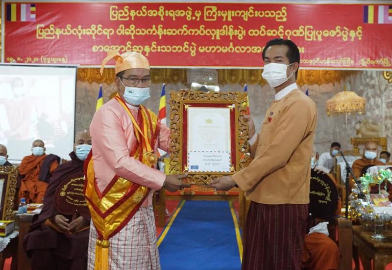 ကယားပြည်နယ် အစိုးရအဖွဲ့မှ ကြီမှူးကျင်းပ ပြုလုပ်သည့် ပြည်နယ်လုံးဆိုင်ရာ ဝါဆိုသင်္ကန်း ဆက်ကပ် လှူဒါန်းခြင်း၊ သာသနာတော်ဆိုင်ရာ ဘွဲ့တံဆိပ်တော်ရ ဆရာတော်များအား ထပ်ဆင့်ဂုဏ်ပြု ပူဇော်ခြင်း နှင့် ၂၀၁၉ ခုနှစ်၊ အစိုးရ ဓမ္မာစရိယနှင့် ပါဠိပထမပြန် စာမေးပွဲတွင် ဖြေဆို အောင်မြင်တော်မူခဲ့ကြသည့် စာအောင်သံဃာတော်များထံ စာအောင်ဆု အလှူတော်များ ဆက်ကပ်လှူဒါန်းခြင်း မဟာမင်္ဂလာ အခမ်းအနားအား ယမန်နေ့ မွန်းလွဲပိုင်းက လွိုင်ကော်မြို့၊ သာသနာ့ဗိမာန်တော်ကြီး၌ ကျင်းပပြုလုပ်ခဲ့သည်။