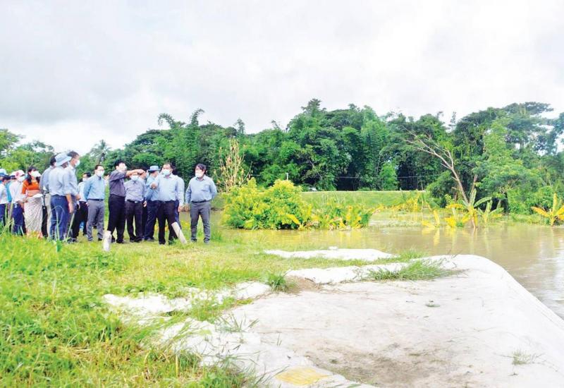 စိုက်ပျိုးရေး၊ မွေးမြူရေးနှင့် ဆည်မြောင်းဝန်ကြီးဌာန ဒုတိယဝန်ကြီး ဦးလှကျော်သည် တာဝန်ရှိသူများနှင့်အတူ ယမန်နေ့ နံနက် ၁၀ နာရီက ဟင်္သာတ ကမ်းနားတာ (အိပ်ပျက်)တွင် တာပုံစံကျ ပြုပြင်ခြင်းလုပ်ငန်းနှင့် ဖြတ်တာသစ်တွင် ရေဝင်ရောက်မှုအခြေအနေများ၊ မြစ်ကမ်း ကာကွယ်ခြင်း လုပ်ငန်း၊ လှိုင်းကာတန်းရိုက်ခြင်းလုပ်ငန်း၊ ကမ်းပြိုကမ်းစားမှု အခြေအနေများကို ကြည့်ရှုစစ်ဆေး သည်။