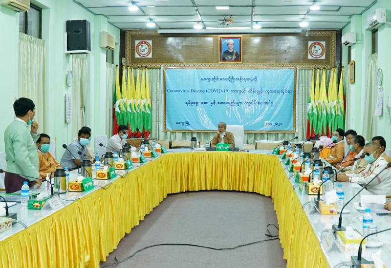 နိုင်ငံခြားရေးဝန်ကြီးဌာနနှင့် အပြည်ပြည်ဆိုင်ရာ ပူးပေါင်းဆောင်ရွက်ရေးဝန်ကြီးဌာန COVID-19 အသက်ရှူ လမ်းကြောင်းဆိုင်ရာ ကူးစက်ရောဂါ ကာကွယ်၊ထိန်းချုပ်ရေး လုပ်ငန်းအဖွဲ့ ၏ဒုတိယအကြိမ်အစည်းအဝေးကို ယနေ့ မွန်းလွဲ ၂ နာရီတွင် နိုင်ငံခြားရေး ဝန်ကြီးဌာန၌ ကျင်းပပြုလုပ်ရာ အပြည်ပြည်ဆိုင်ရာ ပူးပေါင်း ဆောင်ရွက်ရေးဝန်ကြီးဌာန ပြည်ထောင်စုဝန်ကြီး ဦးကျော်တင် တက်ရောက်သည်။