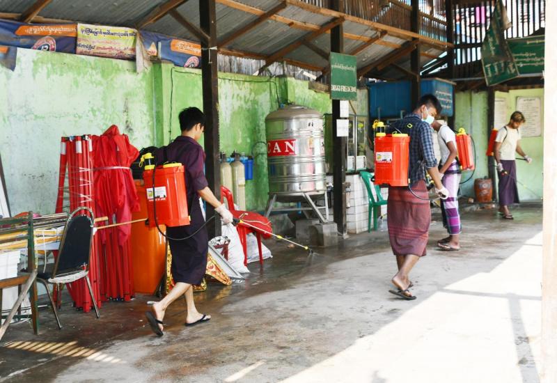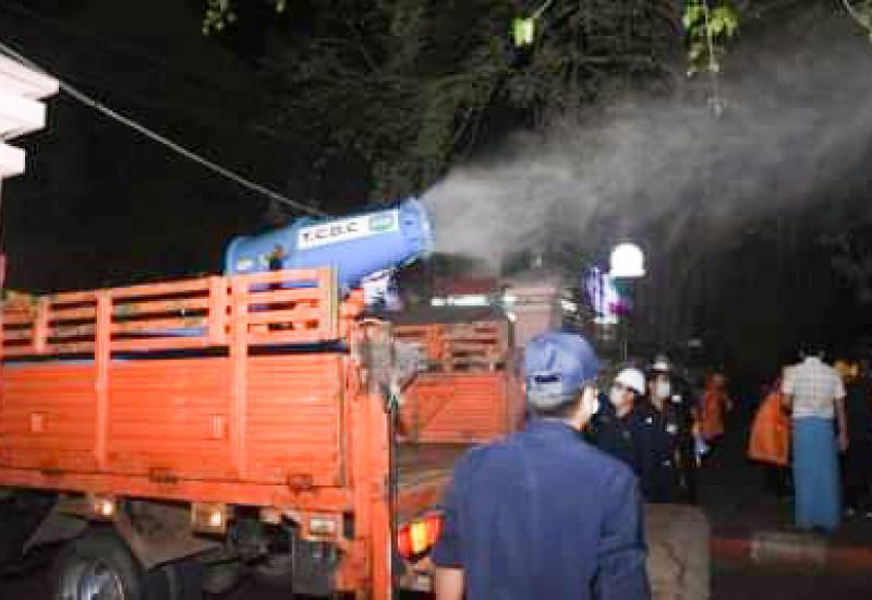 ရန်ကုန်မြို့တော်စည်ပင်သာယာရေးကော်မတီ ပတ်ဝန်းကျင်ထိန်းသိမ်းရေးနှင့် သန့်ရှင်းရေးဌာနမှ ဌာနမှူး ဦးဆောင်၍ ယမန်နေ့ည ၉ နာရီက ကိုရိုနာဗိုင်းရပ်(စ်)ရောဂါ ကာကွယ်ထိန်းချုပ်နိုင်ရေးနှင့် ကြိုတင်ကာကွယ်နိုင်ရေးအတွက် ရန်ကုန်ပြည်သူဆေးရုံကြီး အတွင်းအပြင် နေရာများဆေးဖျန်းရာ စည်ပင်သာယာရေးဝန်ကြီး ရန်ကုန်မြို့တော်ဝန် ဦးမောင်မောင်စိုး၊ ဒုတိယမြို့တော်ဝန် ဦးစိုးလွင်နှင့် တာဝန်ရှိသူများက ကြည့်ရှုစစ်ဆေးခဲ့ကြသည်။