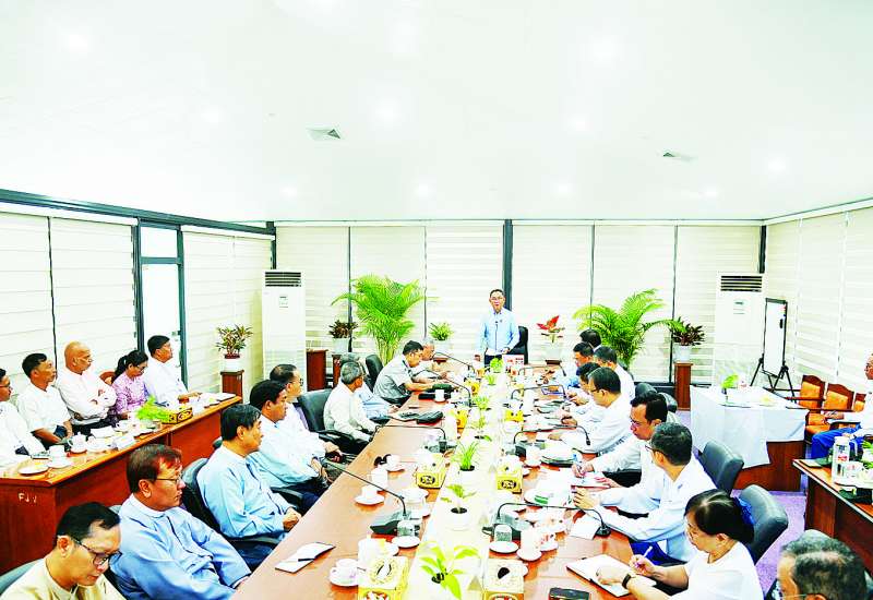 သယံဇာတနှင့် သဘာဝပတ်ဝန်းကျင်ထိန်းသိမ်းရေးဝန်ကြီးဌာန ပြည်ထောင်စုဝန်ကြီးဦးခင်မောင်ရီသည် သစ်အခြေခံစက်မှုလုပ်ငန်းရှင်များ၊ ကြိမ်၊ ဝါး အချောထည်လုပ်ငန်းရှင်များ၊ သစ်တောဦးစီးဌာနနှင့် မြန်မာ့သစ်လုပ်ငန်းမှ တာဝန်ရှိသူများနှင့် ယနေ့နံနက်ပိုင်းတွင် ရန်ကုန်တိုင်းဒေသကြီး ဗိုလ်တထောင်မြို့နယ်ရှိ သစ်တောထွက်ပစ္စည်း ဖက်စပ်ကော်ပိုရေးရှင်းရုံး အစည်းအဝေးခန်းမ၌ တွေ့ဆုံဆွေးနွေးသည်။