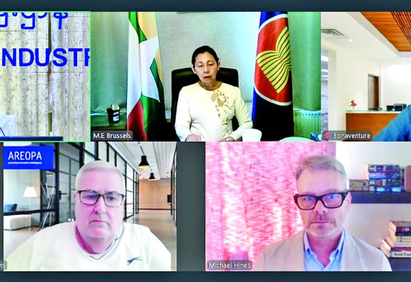 စက်မှုဝန်ကြီးဌာန ပြည်ထောင်စုဝန်ကြီး ဒေါက်တာချာလီသန်းသည် ယနေ့မွန်းလွဲပိုင်းတွင် ဘယ်လ်ဂျီယံနိုင်ငံ ဘရပ်ဆဲလ်မြို့အခြေစိုက် AREOPA စီမံခန့်ခွဲမှုအကြံပေးကုမ္ပဏီ၏ ဒုတိယအမှုဆောင်ချုပ် ဒေါက်တာ ဘိုနဗန်ချားနှင့် တာဝန်ရှိသူများအား စက်မှုဝန်ကြီးဌာန ရုံးအမှတ် (၃၀) အစည်းအဝေးခန်းမ၌ Virtual စနစ်ဖြင့် လက်ခံတွေ့ဆုံသည်။