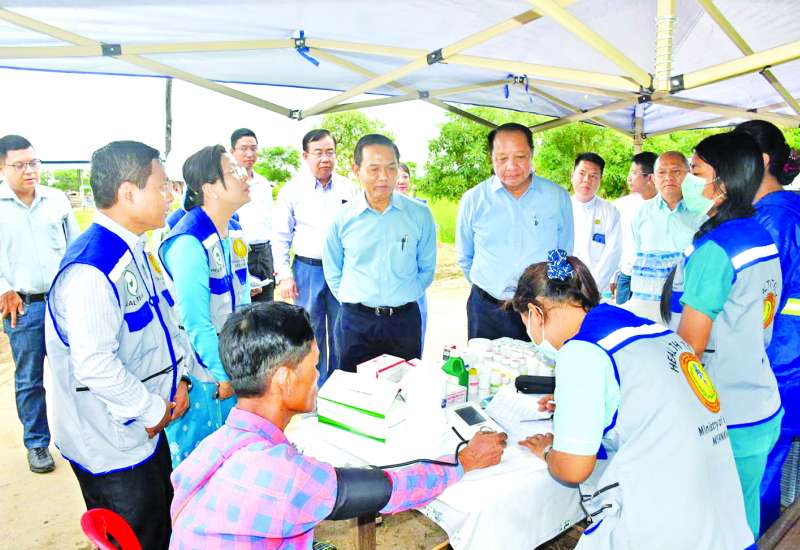 ကျန်းမာရေးဝန်ကြီးဌာန ဒုတိယဝန်ကြီး ပါမောက္ခ ဒေါက်တာ အေးထွန်းသည် ကျန်းမာရေးဝန်ကြီးဌာန ပြည်ထောင်စုဝန်ကြီးရုံးနှင့် ပြည်သူ့ကျန်းမာရေးဦးစီးဌာန ညွှန်ကြားရေးမှူးချုပ် ဒေါက်တာ မြတ်ဝဏ္ဏစိုးနှင့်အတူ ယမန်နေ့ ညနေပိုင်းတွင် ပြည်ထောင်စုနယ်မြေ နေပြည်တော် တပ်ကုန်းမြို့နယ် ရှောက်ကုန်းကျေးရွာသို့ သွားရောက်၍ ရေဝင်ရောက်မှုအခြေအနေကိုကြည့်ရှု၍ ယာယီဆေးခန်းဖွင့်လှစ်ကာ ရေဘေးရှောင်ပြည်သူများအတွက် ကျန်းမာရေးစောင့်ရှောက်နေမှုများကို ကြည့်ရှုပြီး လူနာများကို အားပေးစကားပြောကြား၍ ကျန်းမာရေးဝန်ထမ်းများအား ချီးမြှင့်ငွေများပေးအပ်သည်။