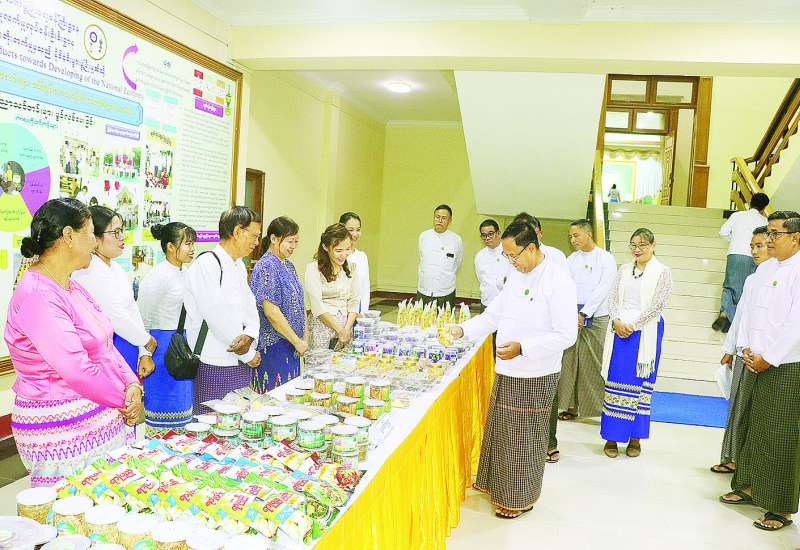 သမဝါယမနှင့်ကျေးလက်ဖွံ့ဖြိုးရေးဝန်ကြီးဌာန၊ အသေးစားစက်မှုလက်မှုလုပ်ငန်းဦးစီးဌာနမှ အကောင်အထည်ဖော်ဆောင်ရွက်လျက်ရှိသည့် အသေးစားကုန်ထုတ်လုပ်ငန်းများ ဖန်တီးပေးနိုင်ရေးနှင့် ကျေးလက်နေမိသားစုဝင်ငွေတိုးရေးစီမံကိန်းလုပ်ငန်းဖြင့် ကိုယ်ပိုင်လုပ်ငန်းများထူထောင်ပေးခဲ့သော လုပ်ငန်းရှင်များနှင့် တွေ့ဆုံဆွေးနွေးပွဲအခမ်းအနားကို ယနေ့နံနက်ပိုင်းက နေပြည်တော်ရှိ ရုံးအမှတ်(၁၆) ပြည်ထောင်စုဝန်ကြီးရုံး စုပေါင်းအစည်းအဝေးခန်းမ၌ ကျင်းပသည်။