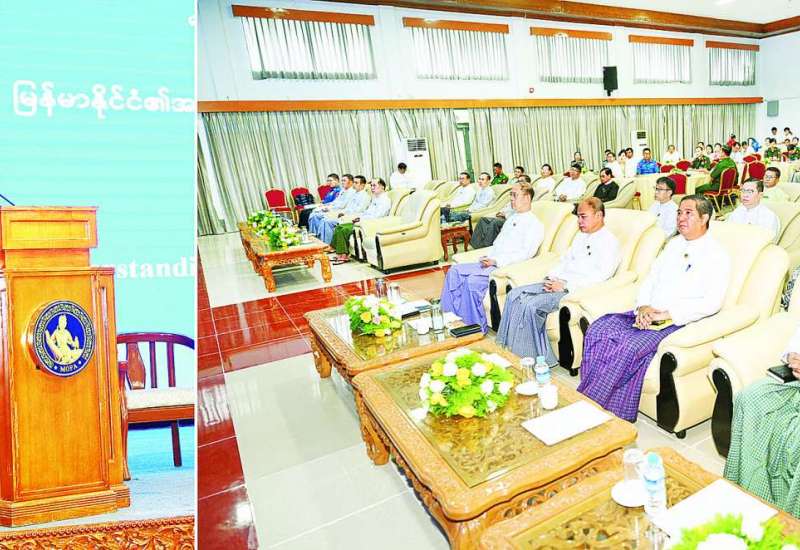 မြန်မာနိုင်ငံ၏ အပြည်ပြည်ဆိုင်ရာ နယ်နိမိတ်အကြောင်း သိကောင်းစရာ အလုပ်ရုံဆွေးနွေးပွဲကို ဩဂုတ် ၂၇ ရက်မှ ၂၈ ရက်အထိ နေပြည်တော်ရှိ နိုင်ငံခြားရေးဝန်ကြီးဌာန လောကနတ်ခန်းမ၌ ကျင်းပလျက်ရှိသည်။