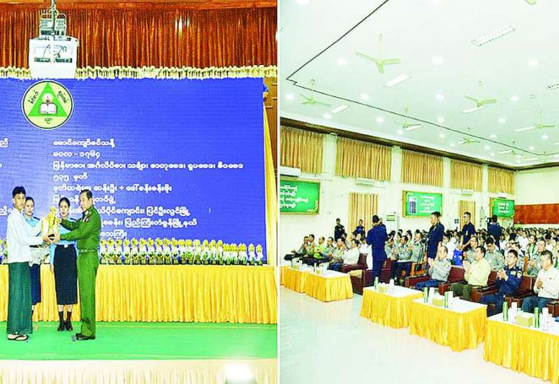 ပြည်ထဲရေးဝန်ကြီးဌာန ၂၀၂၄-၂၀၂၅ ပညာသင်နှစ် တက္ကသိုလ်ဝင်စာမေးပွဲတွင် ထူးချွန်စွာ အောင်မြင်ခဲ့ကြသော ပြည်ထောင်စုဝန်ကြီးရုံးနှင့် တပ်ဖွဲ့/ဦးစီးဌာနများမှ တပ်ဖွဲ့ဝင်/ဝန်ထမ်းများ၏ သား/သမီး၊ ကျောင်းသား ကျောင်းသူများ ဂုဏ်ပြုချီးမြှင့်ခြင်းအခမ်းအနားကို ယနေ့နံနက်ပိုင်းတွင် မြန်မာနိုင်ငံရဲတပ်ဖွဲ့ဌာနချုပ် အရိန္ဒမာခန်းမ၌ ကျင်းပသည်။