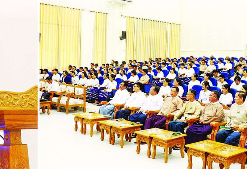 နယ်စပ်ရေးရာဝန်ကြီးဌာနနှင့် တိုင်းရင်းသားလူမျိုးများရေးရာဝန်ကြီးဌာန ပြည်ထောင်စုဝန်ကြီး ဒုတိယဗိုလ်ချုပ်ကြီး ရာပြည့်သည် တိုင်းရင်းသားလူမျိုးများရေးရာဝန်ကြီးဌာန ဒုတိယဝန်ကြီး၊ ရန်ကုန်တိုင်းဒေသကြီး လုံခြုံရေးနှင့်နယ်စပ်ရေးရာဝန်ကြီး၊ တိုင်းရင်းသားရေးရာဝန်ကြီးတို့နှင့်အတူ ယနေ့နံနက်ပိုင်းက ပြည်ထောင်စုတိုင်းရင်းသားကျေးရွာအစည်းအဝေးခန်းမ၌ နယ်စပ်ရေးရာဝန်ကြီးဌာနနှင့် တိုင်းရင်းသားလူမျိုးများရေးရာဝန်ကြီးဌာနတို့မှ ဝန်ထမ်းများနှင့် တွေ့ဆုံသည်။