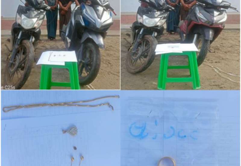 မန္တလေးတိုင်းဒေသကြီး၊ စဉ့်ကိုင်မြို့နယ်၌ ဩဂုတ်လ ၈ ရက်နေ့က ဆိုင်ကယ်လုယက်မှု ကျူးလွန်သူအမျိုးသား ၄ ဦးအား သက်သေခံပစ္စည်းများနှင့်အတူ ဖော်ထုတ်ဖမ်းဆီးရမိခဲ့ကြောင်း သိရသည်။
