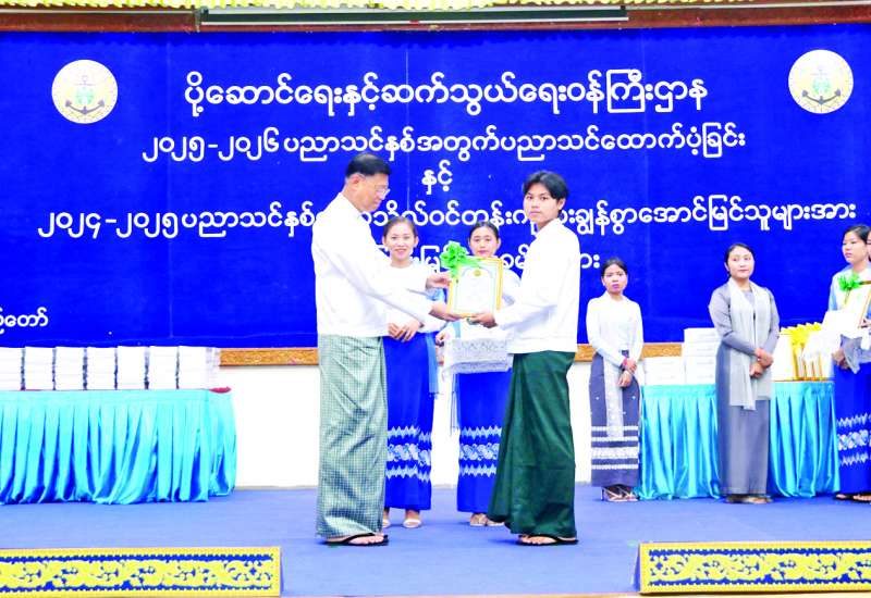၂၀၂၅-၂၀၂၆ ပညာသင်နှစ် အခြေခံပညာကျောင်းများတွင် တက်ရောက်သင်ကြားလျက်ရှိသည့် ပို့ဆောင်ရေးနှင့်ဆက်သွယ်ရေးဝန်ကြီးဌာန ဝန်ထမ်းများ၏ သားသမီးများ ပညာသင်ထောက်ပံ့ခြင်းနှင့် ၂၀၂၄-၂၀၂၅ ပညာသစ်နှစ်တက္ကသိုလ်ဝင်စာမေးပွဲတွင် ဂုဏ်ထူးဖြင့် ထူးချွန်စွာအောင်မြင်ခဲ့ကြသည့် ဝန်ထမ်းများ၏ သားသမီးများအား ဂုဏ်ပြုဆုချီးမြှင့်ပွဲအခမ်းအနားကို ယနေ့နံနက်ပိုင်းတွင် ပို့ဆောင်ရေးနှင့်ဆက်သွယ်ရေးဝန်ကြီးဌာန ရုံးအမှတ်(၂)၌ ကျင်းပသည်။