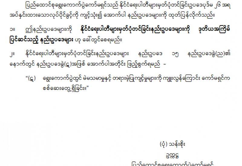 အမျိုးသားလွှတ်တော်ရွေးကောက်ပွဲနည်းဥပဒေများကို ထုတ်ပြန်ကြေညာခြင်း