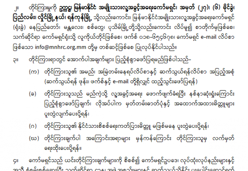 “တိုင်ကြားနိုင်ပါကြောင်း ပြည်သူသို့အသိပေးခြင်း”