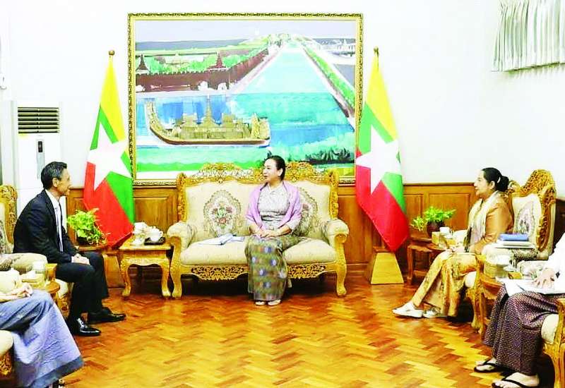 ပညာရေးဝန်ကြီးဌာန ပြည်ထောင်စုဝန်ကြီး ဒေါက်တာချောချောစိန်သည် ကုလသမဂ္ဂကလေးများရန်ပုံငွေအဖွဲ့ (United Nations Children’s Fund - UNICEF) ၏ မြန်မာနိုင်ငံဆိုင်ရာ ဌာနေကိုယ်စားလှယ် Mr.Yasumasa Kimura အား ယနေ့မွန်းလွဲပိုင်းတွင် နေပြည်တော်ရှိ အဆိုပါဝန်ကြီးဌာန အစည်းအဝေးခန်းမ၌ လက်ခံတွေ့ဆုံသည်။