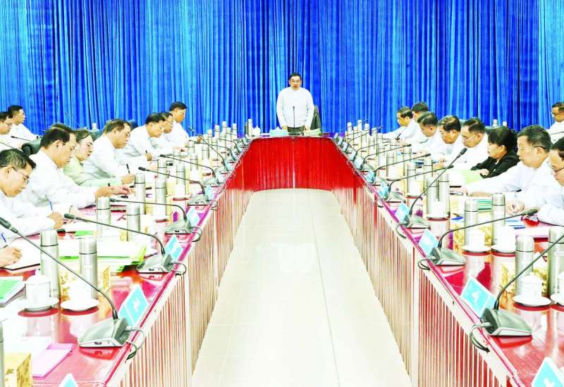 ပြည်ထောင်စုသမ္မတမြန်မာနိုင်ငံတော် ပြည်ထောင်စုအစိုးရအဖွဲ့အစည်းအဝေးကို ယနေ့မွန်းလွဲပိုင်းတွင် နိုင်ငံတော်ဝန်ကြီးချုပ်ရုံး အစည်းအဝေးခန်းမ၌ ကျင်းပပြုလုပ်ရာ နိုင်ငံတော်ဝန်ကြီးချုပ် ဦးညိုစော တက်ရောက်အမှာစကားပြောကြားသည်။