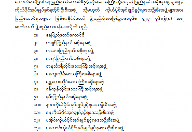 တိုင်းဒေသကြီး သို့မဟုတ် ပြည်နယ်အစိုးရအဖွဲ့များ ဖွဲ့စည်းတာဝန်ပေးအပ်ခြင်း