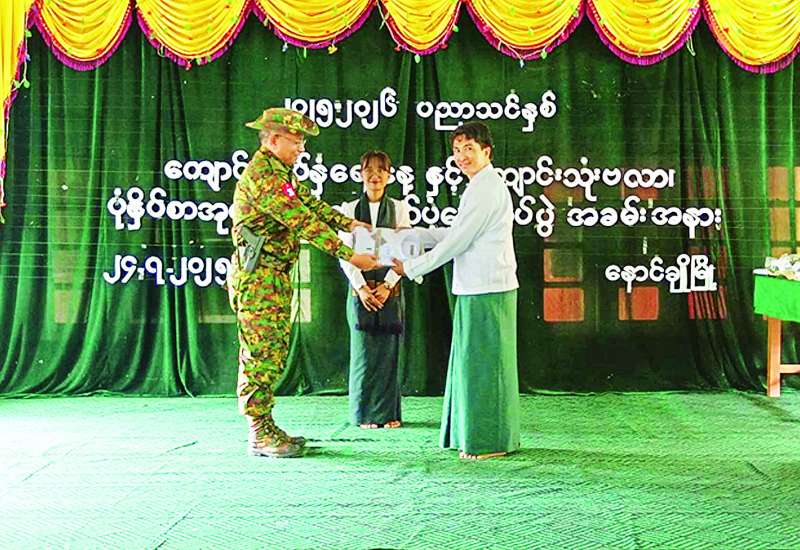 တပ်မတော်က ပြည်သူလူထု အေးချမ်းစွာနေထိုင်နိုင်ရေးအတွက် အကြမ်းဖက်ချေမှုန်းမှုစစ်ဆင်ရေး (Counter- Terrorism Operat-ion) ဆောင်ရွက်ကာ ပြန်လည်ထိန်းချုပ်ထားသည့် ရှမ်းပြည်နယ် (မြောက်ပိုင်း) နောင်ချိုမြို့၌ ပညာရေးကဏ္ဍတွင် နစ်နာဆုံးရှုံးမှုများ မဖြစ်စေရန်အတွက် အကြမ်းဖက်သောင်းကျန်းသူများ ယာယီထိန်းချုပ်ထားစဉ် တစ်နှစ်နီးပါး ပိတ်ထားခဲ့ရသည့် အခြေခံပညာကျောင်းများကို အမြန်ဆုံးပြန်လည်ဖွင့်လှစ်ပြီး ပညာသင်ကြားပေးနိုင်ရေး စီစဉ်ဆောင်ရွက်လျက်ရှိသည်။