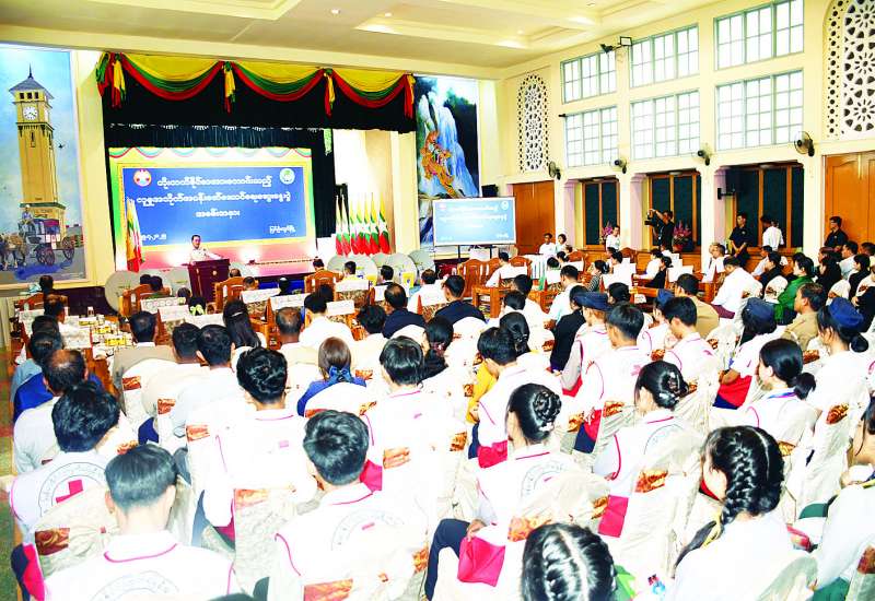 အလုပ်သမားဝန်ကြီးဌာန ဒုတိယဝန်ကြီး ဦးဝင်းရှိန်သည် ယနေ့တွင် ရန်ကုန်တိုင်းဒေသကြီး အလုပ်သမားရေးရာဌာနမှ တာဝန်ရှိသူများနှင့်အတူ ဒဂုံမြို့သစ် (မြောက်ပိုင်း) မြို့နယ်ရှိ ကျွမ်းကျင်မှုလေ့ကျင့်ရေးသင်တန်းကျောင်း၌ ကိုရီးယားဘာသာအရည်အချင်းစစ် (EPS) စာမေးပွဲအောင်မြင်သူများအား အလုပ်လျှောက်လွှာထုတ်ပေးနေမှုကို ကြည့်ရှုစစ်ဆေးသည်။
