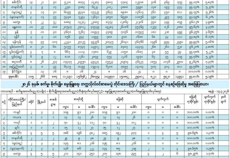 ၂၀၂၆ ခုနှစ် တက္ကသိုလ်ဝင်စာမေးပွဲနှင့် ၂၀၂၆ ခုနှစ် စက်မှု၊ စိုက်ပျိုး၊ မွေးမြူရေး တက္ကသိုလ်ဝင်စာမေးပွဲများကို ယနေ့နံနက်ပိုင်းတွင် နိုင်ငံခြားစာစစ်ဌာနအပါဝင် တစ်နိုင်ငံလုံးအတိုင်းအတာဖြင့် ဆက်လက်ကျင်းပသည်။