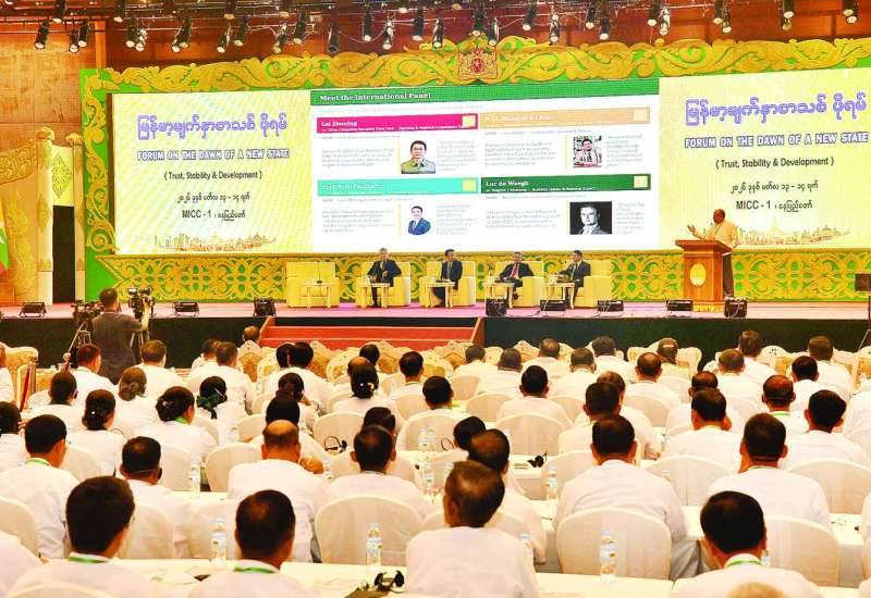 “မြန်မာ့မျက်နှာစာသစ်ဖိုရမ်” (ယုံကြည်မှု၊ တည်ငြိမ်အေးချမ်းမှုနှင့် ဖွံ့ဖြိုးတိုးတက်မှု) “FORUM ON THE DAWN OF A NEW STATE”(Trust, Stability & Development) ကို နေပြည်တော်ရှိ မြန်မာအပြည်ပြည်ဆိုင်ရာကွန်ဗင်းရှင်းဗဟိုဌာန (၁) (MICC- I) ၌ မတ် ၁၃ ရက်နှင့် ၁၄ ရက် နှစ်ရက်တာ ကျင်းပလျက်ရှိသည်။