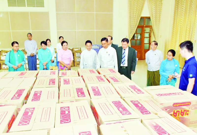 မန္တလေးငလျင်ဘေးသင့်ပြည်သူများအတွက် မြန်မာနိုင်ငံအမျိုးသမီးရေးရာအဖွဲ့ချုပ်သို့ တရုတ်ပြည်သူ့သမ္မတနိုင်ငံ အမျိုးသမီးများအဖွဲ့ချုပ် All China Women’s Federation (ACWF) မှ လှူဒါန်းသည့် အလှူပစ္စည်းများ ပေးအပ်ပွဲကို ယနေ့နံနက် ၁၀ နာရီတွင် နေပြည်တော် မြန်မာနိုင်ငံအမျိုးသမီးရေးရာအဖွဲ့ချုပ်ရုံး သီရိရတနာခန်းမ၌ ကျင်းပသည်။