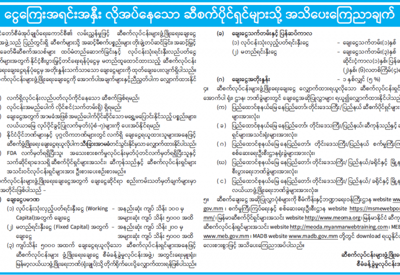 ငွေကြေးအရင်းအနှီး လိုအပ်နေသော ဆီစက်ပိုင်ရှင်များသို့ အသိပေးကြေညာချက်