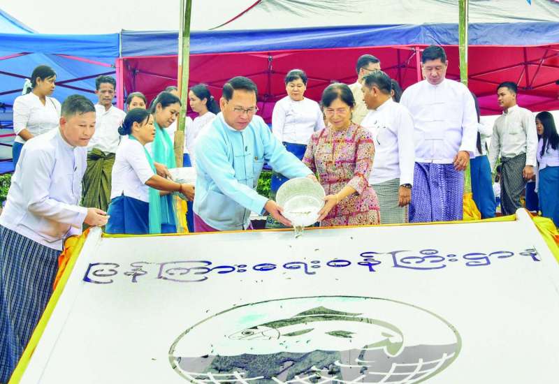 ငါးသယံဇာတတိုးပွားလာစေရေးအတွက် ပြည်ထောင်စုတရားလွှတ်တော်ချုပ် မိသားစုများ၏ ၂၀၂၅ ခုနှစ် မိုးရာသီငါးမျိုးစိုက်ထည့်ခြင်း အခမ်းအနားကို ယမန်နေ့ ညနေပိုင်းက နေပြည်တော်ကောင်စီနယ်မြေ ဇမ္ဗူသီရိမြို့နယ်အတွင်းရှိ မင်္ဂလာကန်၌ ကျင်းပသည်။