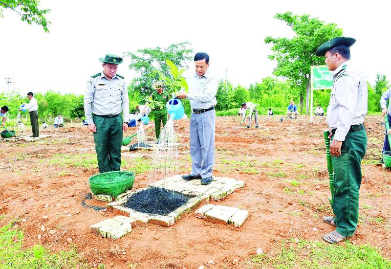 နေပြည်တော်ကောင်စီဥက္ကဋ္ဌ ဦးသန်းထွန်းဦးသည် နေပြည်တော်ကောင်စီဝင်များနှင့်အတူ ယနေ့နံနက်ပိုင်းတွင် တပ်ကုန်းမြို့နယ် အမှတ် (၁) ကံကြီးမွေးမြူရေးဇုန်၌ ကျင်းပသည့် မိုးရာသီသစ်ပင်စိုက်ပျိုးပွဲသို့ တက်ရောက်သည်။