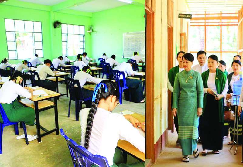 ပညာရေးဝန်ကြီးဌာန ပြည်ထောင်စုဝန်ကြီး ဒေါက်တာချောချောစိန်သည် ကရင်ပြည်နယ်ဝန်ကြီးချုပ် ဦးစောမြင့်ဦး၊ လူမှုရေးရာဝန်ကြီး ဦးစောထွန်းအောင်၊ တာဝန်ရှိသူ များနှင့်အတူ ယနေ့နံနက်ပိုင်းတွင် ကရင်ပြည်နယ်အမှတ်(၁) အခြေခံပညာအထက်တန်းကျောင်း၊ အမှတ်(၂)အခြေခံပညာအထက်တန်းကျောင်း၊ အမှတ်(၃)အခြေခံပညာအထက်တန်းကျောင်းနှင့် အမှတ်(၄) အခြေခံပညာအထက်တန်းကျောင်း စာစစ်ဌာနများ၌ ကျောင်းသား ကျောင်းသူများ ၂၀၂၆ ခုနှစ် တက္ကသိုလ်ဝင်စာမေးပွဲ မြန်မာစာဘာသာရပ် ဖြေဆိုနေမှုကို ကြည့်ရှုအားပေးသည်။
