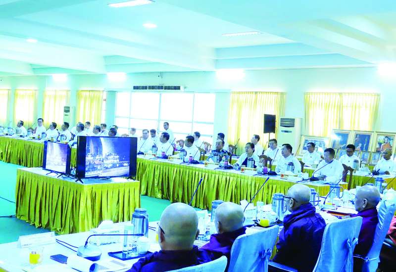 ရန်ကုန်တိုင်းဒေသကြီး မရမ်းကုန်းမြို့နယ် သီရိမင်္ဂလာကမ္ဘာအေးကုန်းမြေ ဆဋ္ဌသင်္ဂါယနာတင် မဟာပါသာဏ လိုဏ်ဂူသိမ်တော်ကြီးအတွင်း၌ ဆဋ္ဌသင်္ဂါယနာတင်အောင်ပွဲ နှစ်(၇၀)ပြည့် အထိမ်းအမှတ် မဟာမင်္ဂလာအခမ်းအနား အောင်မြင်စွာကျင်းပနိုင်ရေးညှိနှိုင်းအစည်းအဝေးကို ယနေ့ မွန်းလွဲ ၁ နာရီတွင် ဥပ္ပါတသန္တိစေတီတော်မြတ်ကြီးရှိ သာသနာ့မဟာဗိမာန်တော်ကြီး၌ ကျင်းပ သည်။