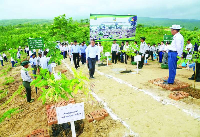 သယံဇာတနှင့်သဘာဝပတ်ဝန်းကျင်ထိန်းသိမ်းရေးဝန်ကြီးဌာန ၂၀၂၅ ခုနှစ် ဒုတိယအကြိမ် မိုးရာသီစုပေါင်းသစ်ပင်စိုက်ပျိုးပွဲကို ပြည်ထောင်စုနယ်မြေ နေပြည်တော်တပ်ကုန်းမြို့နယ် အောက်ဆင်သေကြိုးဝိုင်းအကွက်အမှတ် ၃၀ ရှိ ဂေဟစနစ်ဖြည့် တင်းရေးစိုက်ခင်း ဧက ၁၀၀အတွင်း ကျင်းပရာ ပြည်ထောင်စုဝန်ကြီး ဦးခင်မောင်ရီ၊ ဒုတိယဝန်ကြီး ဦးမင်းသူ၊ အမြဲတမ်းအတွင်းဝန်နှင့် ဌာနဆိုင်ရာတာဝန်ရှိသူများ၊ ဝန်ကြီးဌာနမှအရာထမ်း၊ အမှုထမ်းများ၊ သစ်တောနှင့် ပတ်ဝန်းကျင်ဆိုင်ရာတက္ကသိုလ်မှ ဆရာဆရာမများနှင့် ကျောင်းသား ကျောင်းသူများ၊ ကျောက်မျက်အသင်းမှ တာဝန်ရှိသူများတက်ရောက်ကြပြီး ပြည်ထောင်စုဝန်ကြီးက အထိမ်းအမှတ် ပျဉ်းကတိုးပင်ကို သတ်မှတ်နေရာတွင် ဦးဆောင်စိုက်ပျိုးကာ ဒုတိယဝန်ကြီးနှင့် တက်ရောက်လာသူများက အထိမ်းအမှတ်သစ်ပင်များကို သတ်မှတ်နေရာများတွင် ဆက်လက်စိုက်ပျိုးပေးကြသည်။