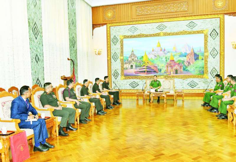 နိုင်ငံတော်စီမံအုပ်ချုပ်ရေးကောင်စီ ဒုတိယဥက္ကဋ္ဌ ဒုတိယတပ်မတော်ကာကွယ်ရေးဦးစီးချုပ် ကာကွယ်ရေးဦးစီးချုပ်(ကြည်း)ဒုတိယဗိုလ်ချုပ်မှူးကြီး စိုးဝင်းသည် အိန္ဒိယတပ်မတော်ကာကွယ်ရေးဆိုင်ရာ ထောက်လှမ်းရေးညွှန်ကြားရေးမှူးချုပ်နှင့် ဒုတိယစစ်ဦးစီးချုပ်(ထောက်လှမ်းရေး)Lieutenant General Shrinjay Pratap Singh, AVSM, YSM ဦးဆောင်သော ကိုယ်စားလှယ်အဖွဲ့အား ယနေ့မွန်းလွဲပိုင်းတွင် နေပြည်တော်ရှိ ဘုရင့်နောင်ရိပ်သာ ဧည့်ခန်းမ၌ လက်ခံတွေ့ဆုံသည်။
