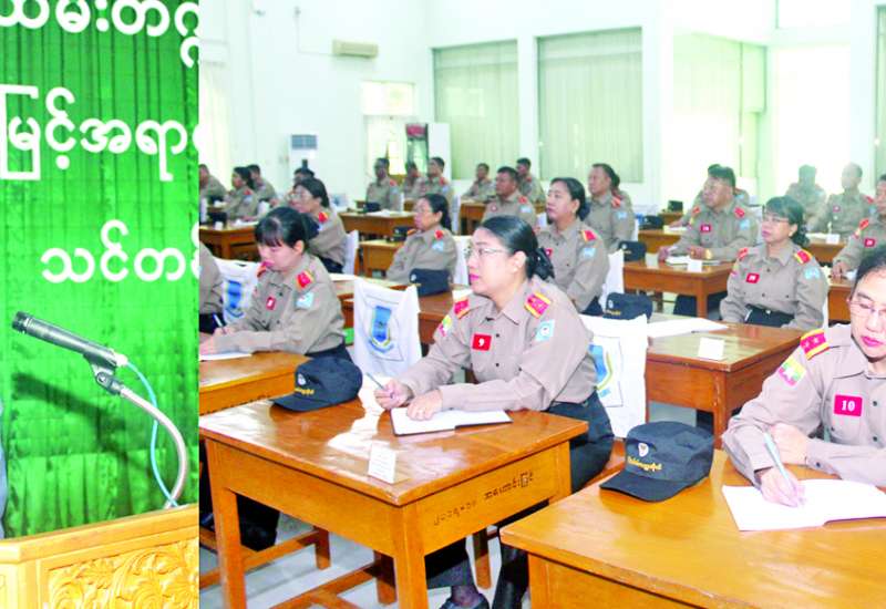 အဆင့်မြင့် အရာထမ်းသင်တန်းအမှတ်စဉ်(၂၇) သင်တန်းဖွင့်ပွဲကို ယနေ့တွင် နိုင်ငံ့ဝန်ထမ်းတက္ကသိုလ် (အောက်မြန်မာပြည်) ၌ကျင်းပရာ ပြည်ထောင်စုရာထူးဝန်အဖွဲ့ အဖွဲ့ဝင်ဦးစိုးတင့်၊ ပါမောက္ခချုပ်နှင့် ဒုတိယပါမောက္ခ ချုပ်များ၊ တက္ကသိုလ်သင်ကြား/ စီမံဌာနများမှ တာဝန်ရှိသူများနှင့် သင်တန်းသား သင်တန်းသူများ တက်ရောက်ကြသည်။