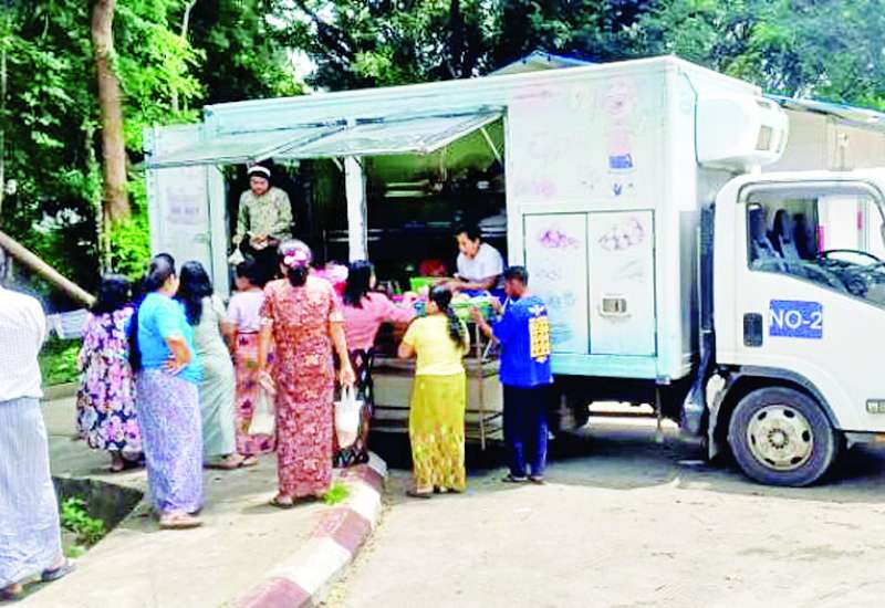 စီးပွားရေးနှင့်ကူးသန်းရောင်းဝယ်ရေးဝန်ကြီးဌာန၊ မြန်မာနိုင်ငံကုန်သည်များနှင့် စက်မှုလက်မှုလုပ်ငန်းရှင်များ အသင်းချုပ် (UMFCCI)၊ မြန်မာနိုင်ငံ မွေးမြူရေး လုပ်ငန်းအဖွဲ့ချုပ်နှင့် မြန်မာနိုင်ငံငါးလုပ်ငန်းအဖွဲ့ချုပ်တို့၏ ပူးပေါင်းစီစဉ်မှုဖြင့် ဆန်၊ ဆီ၊ ဆား၊ ပဲ၊ ငါး၊ ငါးပိ၊ အမဲသား၊ ဆိတ်သား၊ ကြက်သား၊ ဝက်သား၊ ကြက်ဥ၊ ဘဲဥ စသည့် ကုန်မျိုးစုံများနှင့် ဟင်းသီး ဟင်းရွက်များကို ပြည်ထောင်စု နယ်မြေ(နေပြည်တော်)၊ စစ်ကိုင်းနှင့် မန္တလေးမြို့များအတွင်း ငလျင်ဘေးသင့် ဝန်ထမ်းများနှင့် ပြည်သူများသို့ မတ် ၃၀ ရက်မှစ၍ သက်သာသောဈေးနှုန်းများဖြင့် ရောင်းချပေးလျက်ရှိပြီး ယနေ့တွင် ၉၉ ရက်မြောက်အဖြစ် ဈေးကားများဖြင့် လှည့်လည် ရောင်းချပေးလျက်ရှိသည်။
