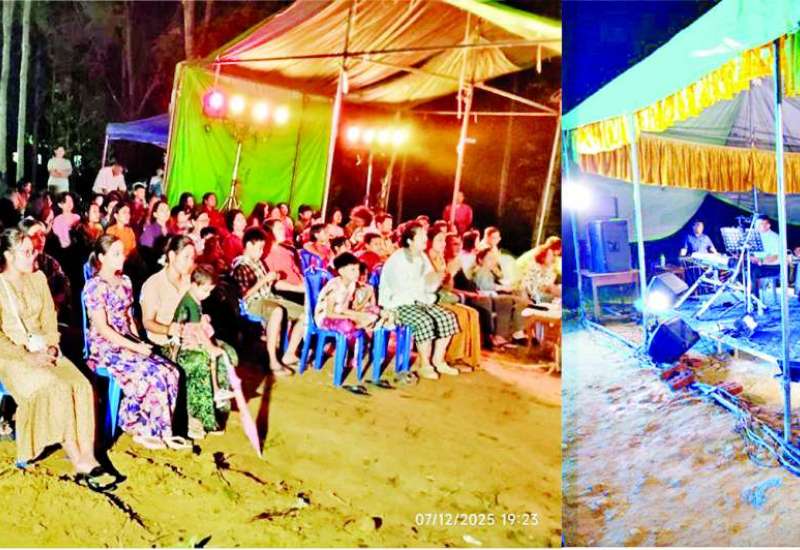 ငလျင်ဒဏ်သင့် ဝန်ထမ်းမိသားစုများအား ယာယီဝန်ထမ်းနေအိမ်များတွင် နေရာချထားပြီးစီးခြင်းအထိမ်းအမှတ်အဖြစ် ဖျော်ဖြေတင်ဆက်ခြင်းကို ယမန်နေ့ညနေပိုင်းတွင် ပြည်ထောင်စုရာထူးဝန်အဖွဲ့၏ ယာယီဝန်ထမ်းအိမ်ရာ ရပ်ကွက် (C) ၌ ကျင်းပသည်။
