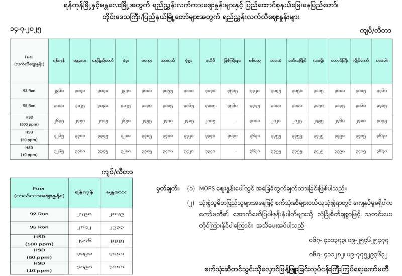 ရန်ကုန်မြို့နှင့် မန္တလေးမြို့အတွက် ရည်ညွှန်းလက်ကားဈေးနှုန်းများနှင့် ပြည်ထောင်စုနယ်မြေ နေပြည်တော်၊ တိုင်းဒေသကြီး/ ပြည်နယ် မြို့တော်များအတွက် ရည်ညွှန်းလက်လီဈေးနှုန်းများ
